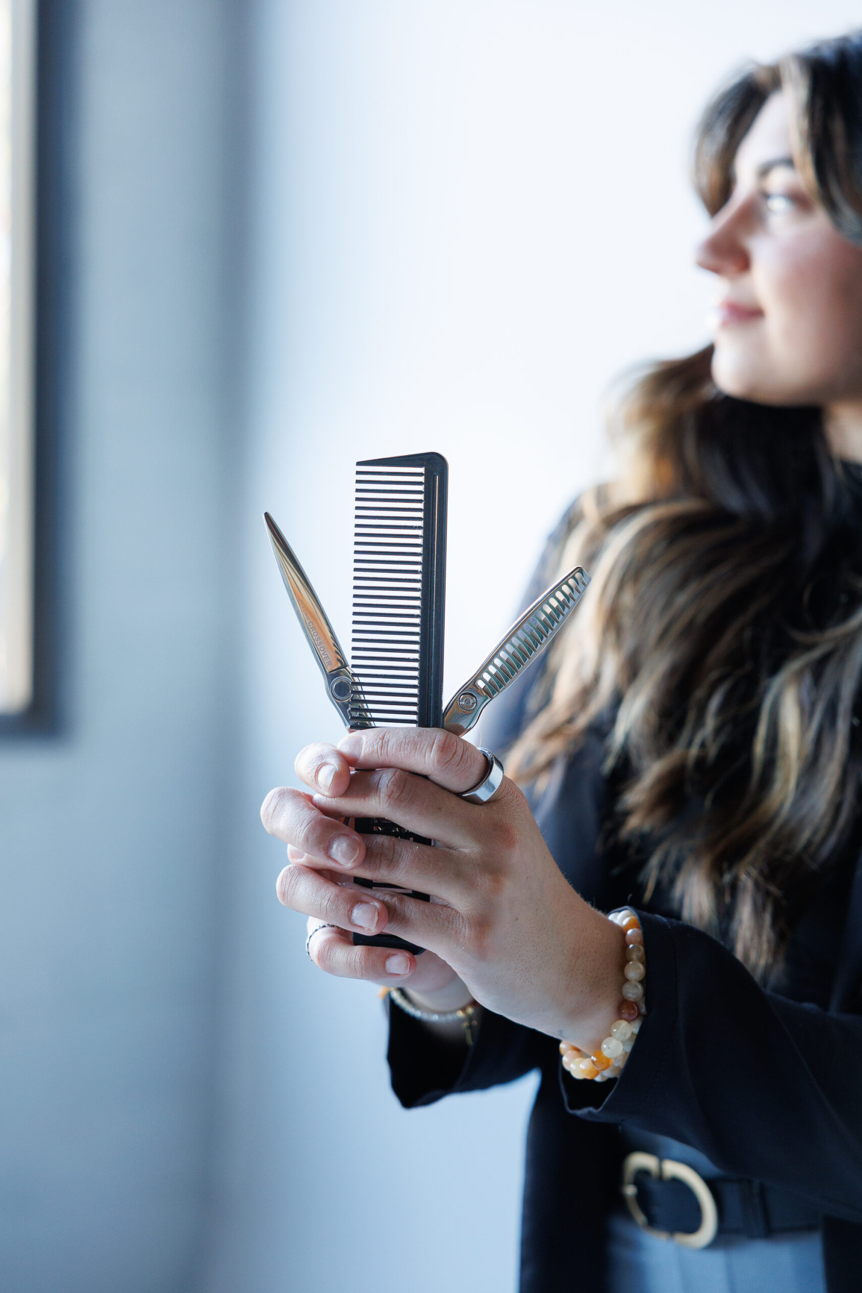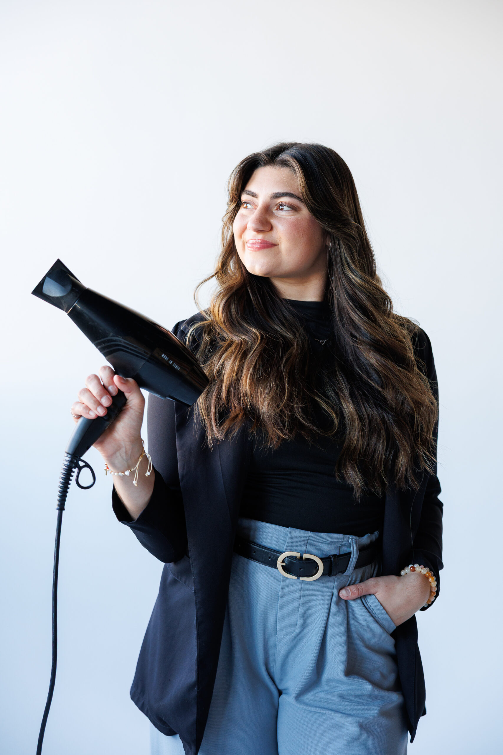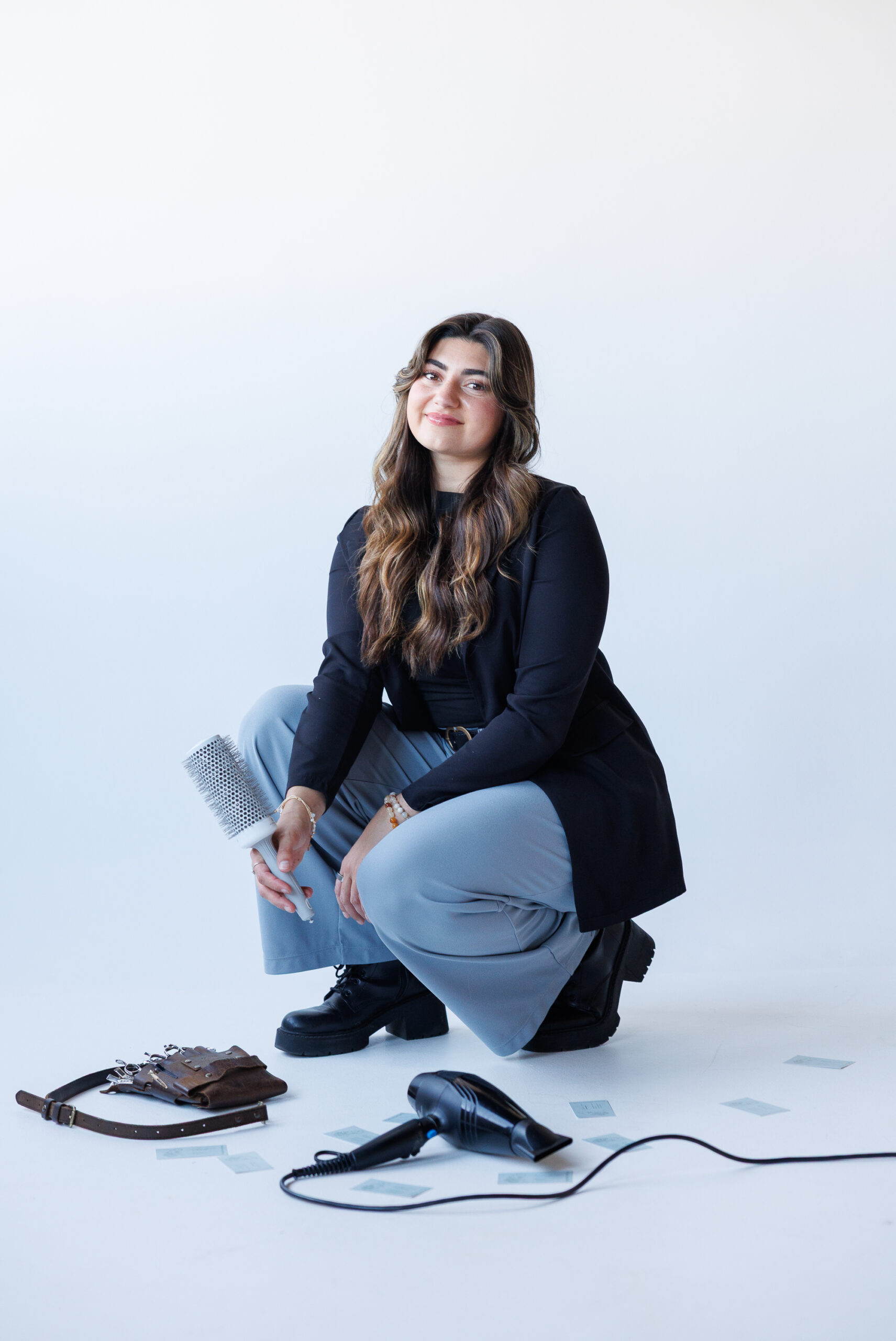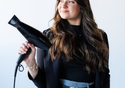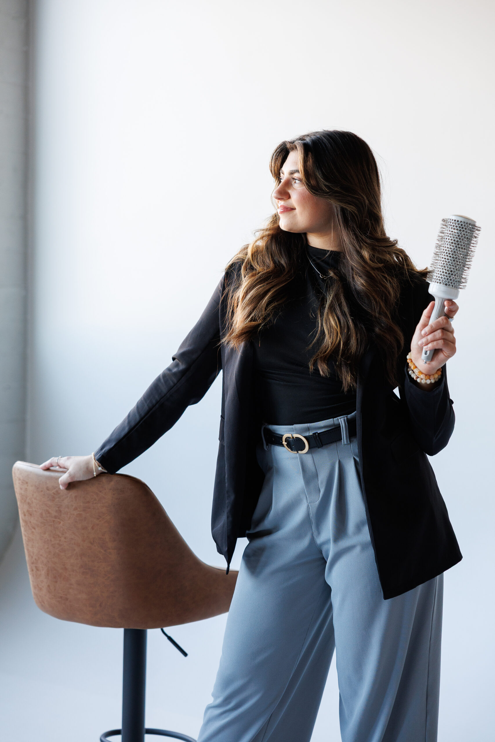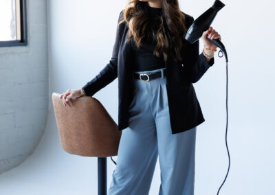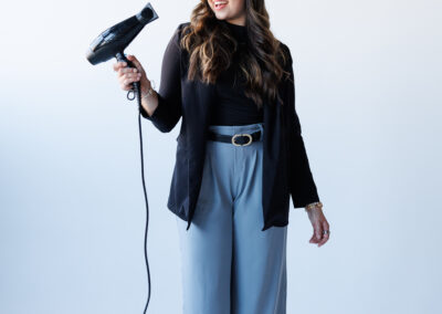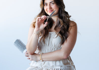 - Fun poses that showcased her hairstyling tools and expertise