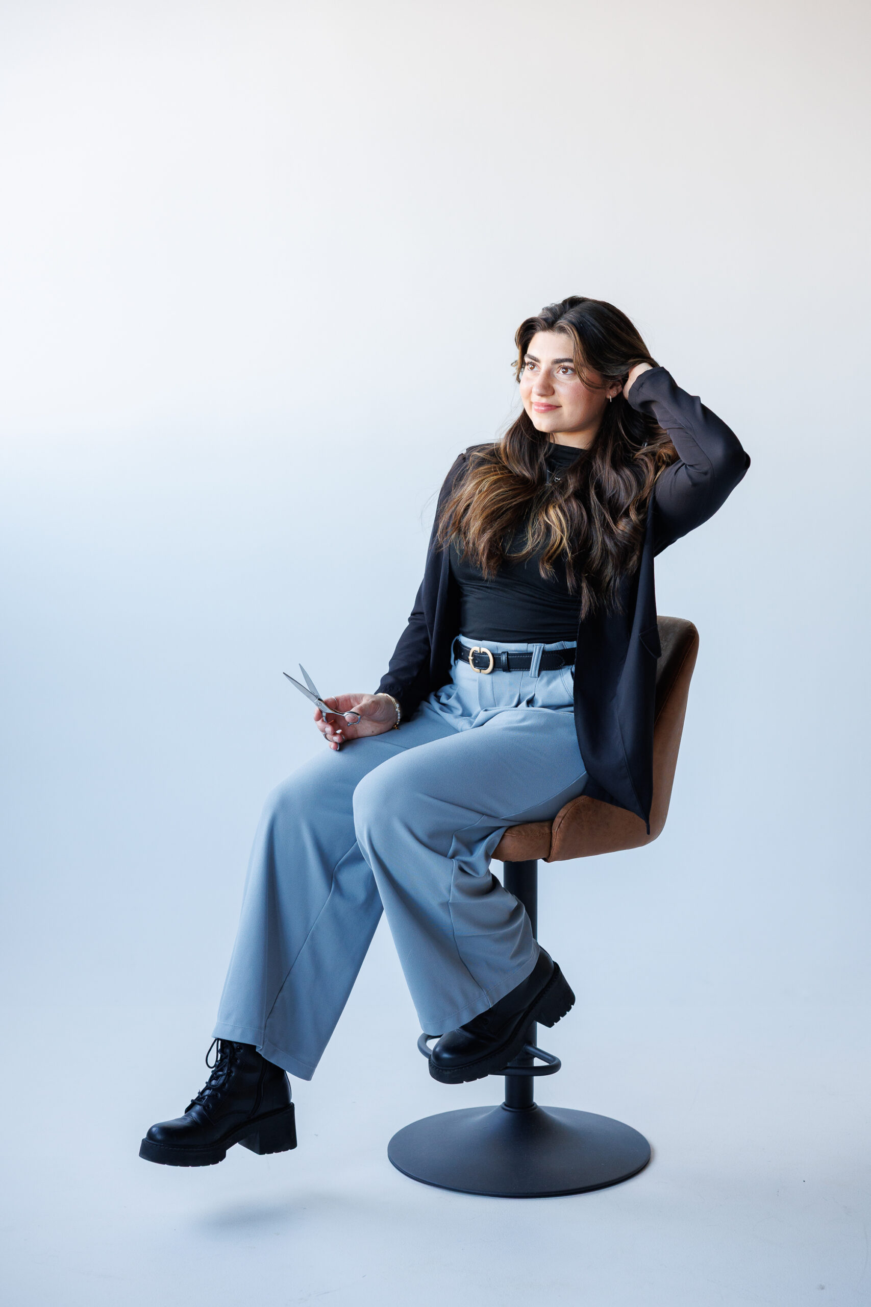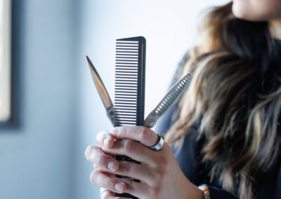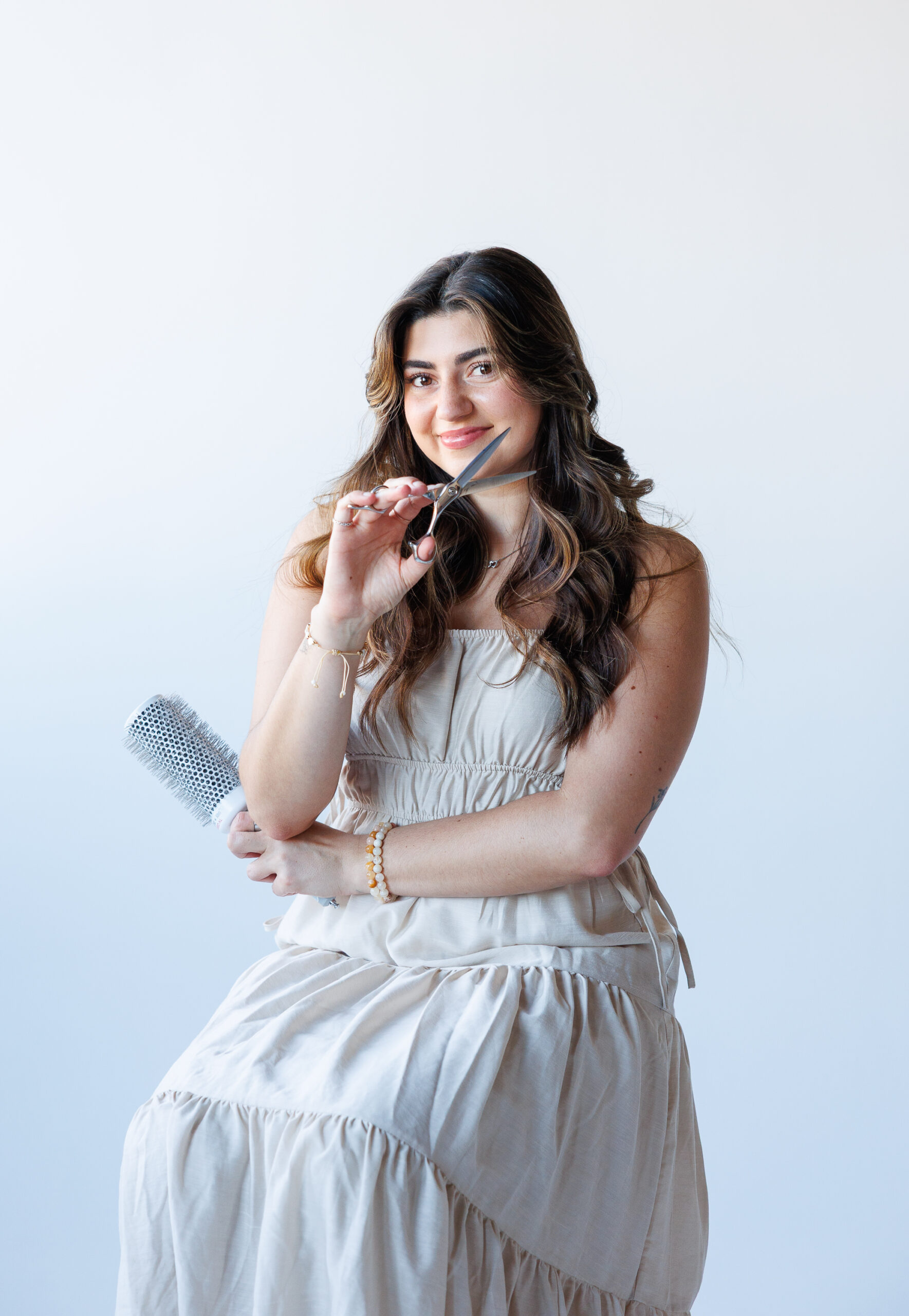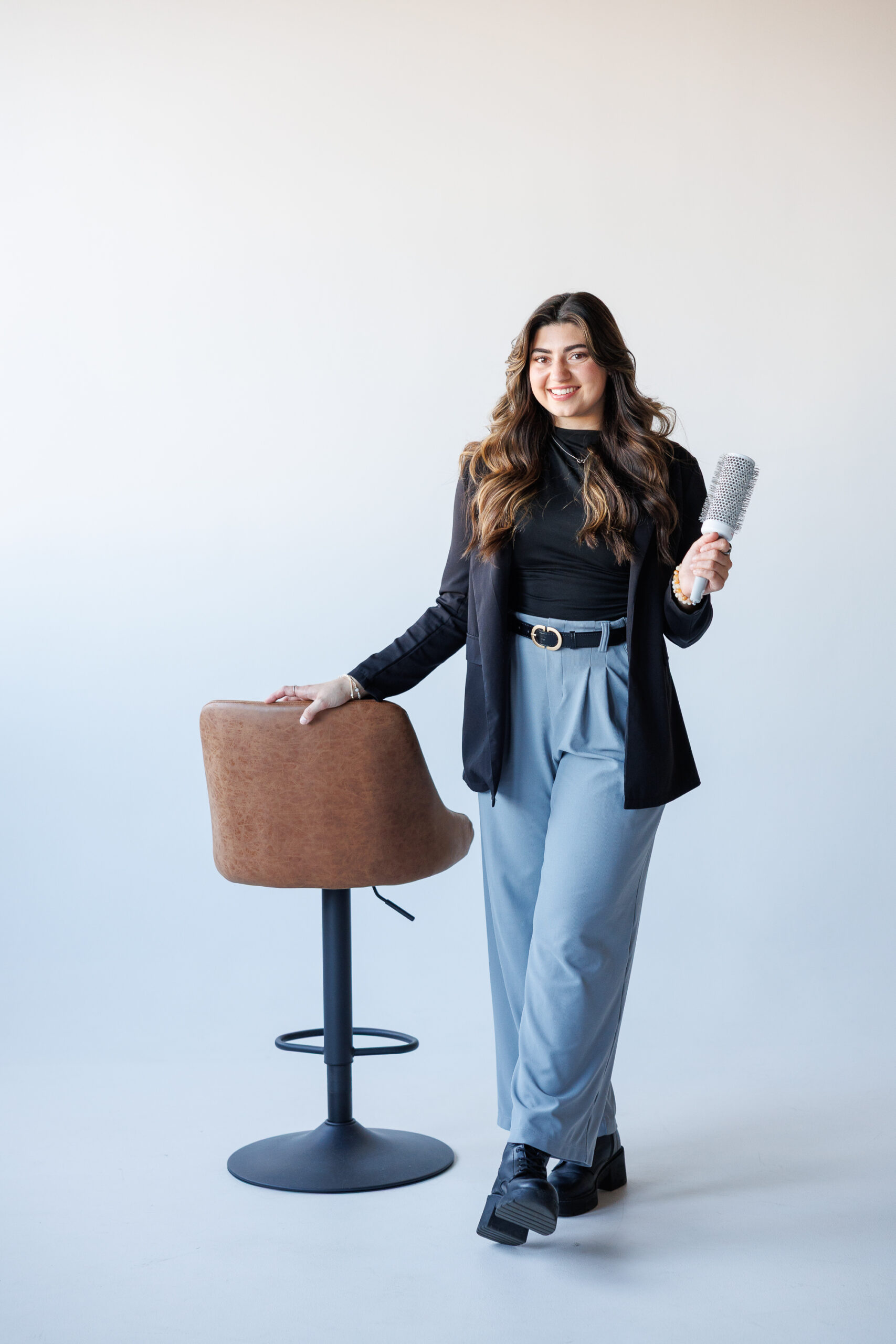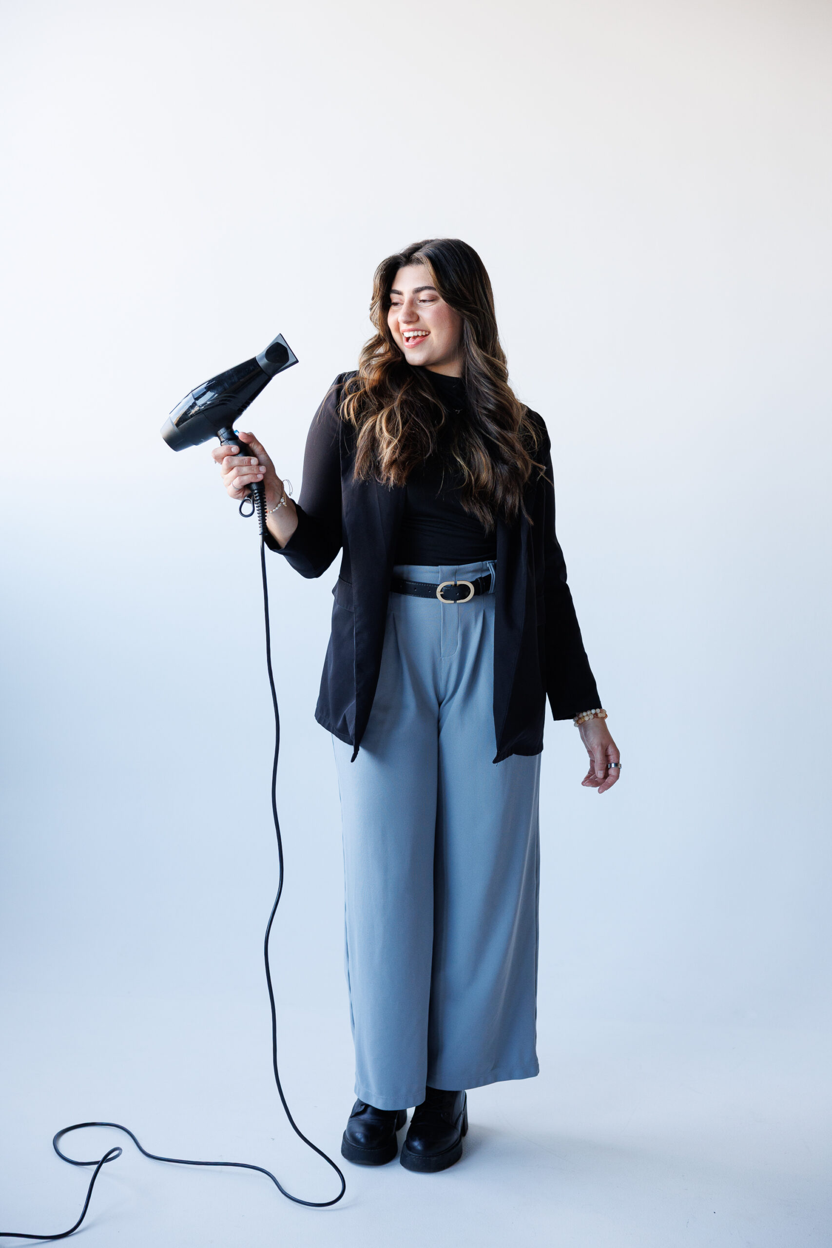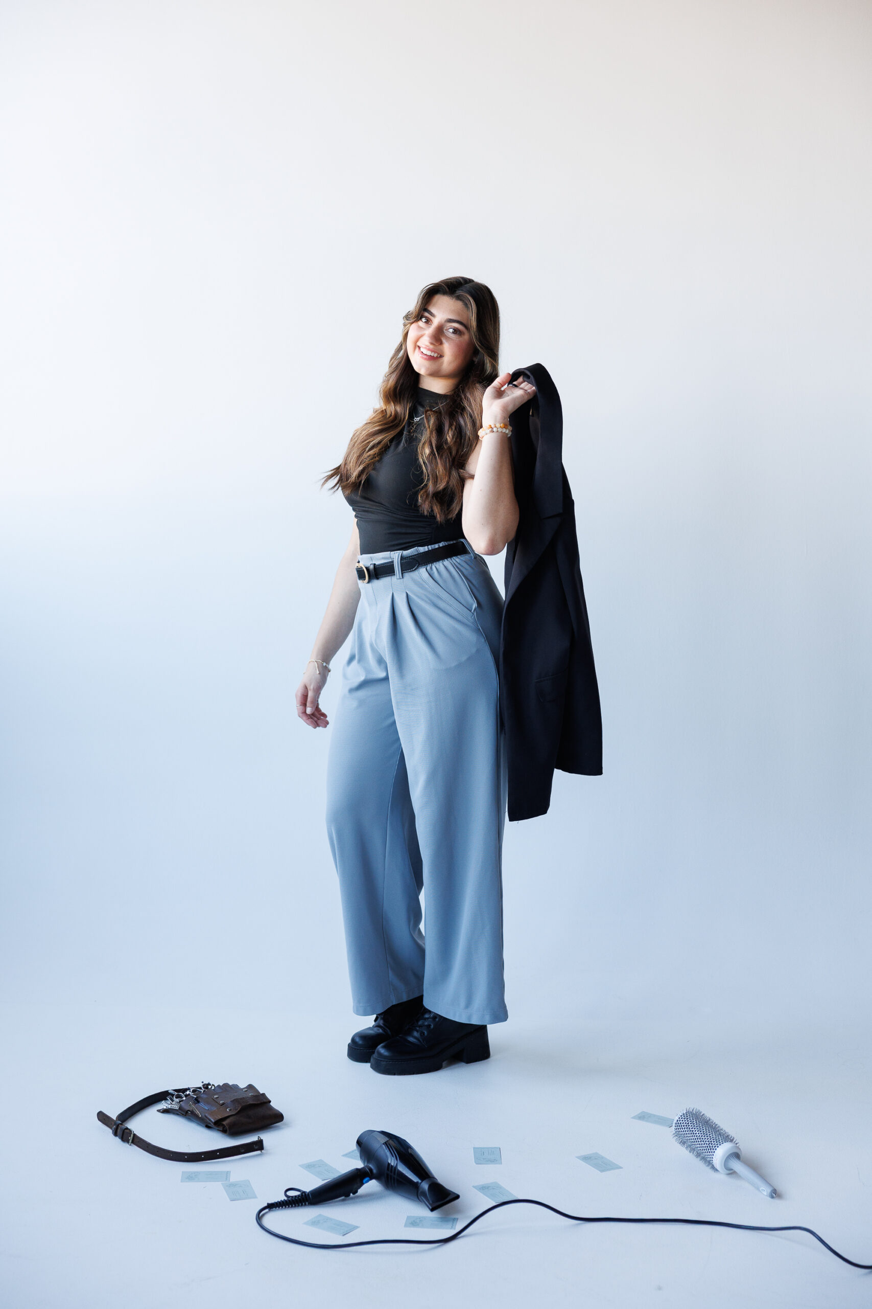 - Fun poses that showcased her hairstyling tools and expertise